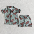 Green cow print boy short sleeve shorts summer pajamas - 3-6M is backordered and will ship as soon as it is back in stock.
