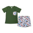 Green pocket top helicopter shorts boy summer clothes