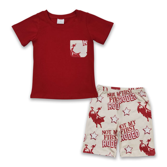 Not my first rodeo red pocket shirt shorts western boy outfits