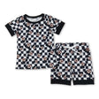 Short sleeves black plaid mouse top shorts baby kids clothing