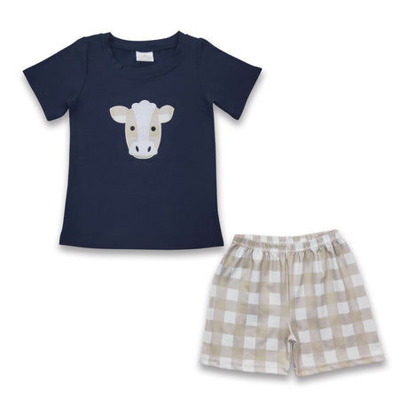 From $2100Unit price /UnavailableBoy Cow Embroidery Plaid Outfit