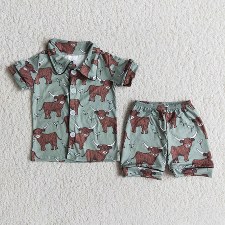 Cow boy horse print boy short sleeve shorts summer pajamas