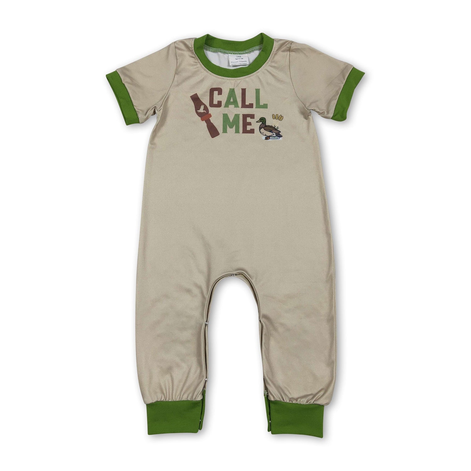 Green short sleeves call me duck baby boy romper