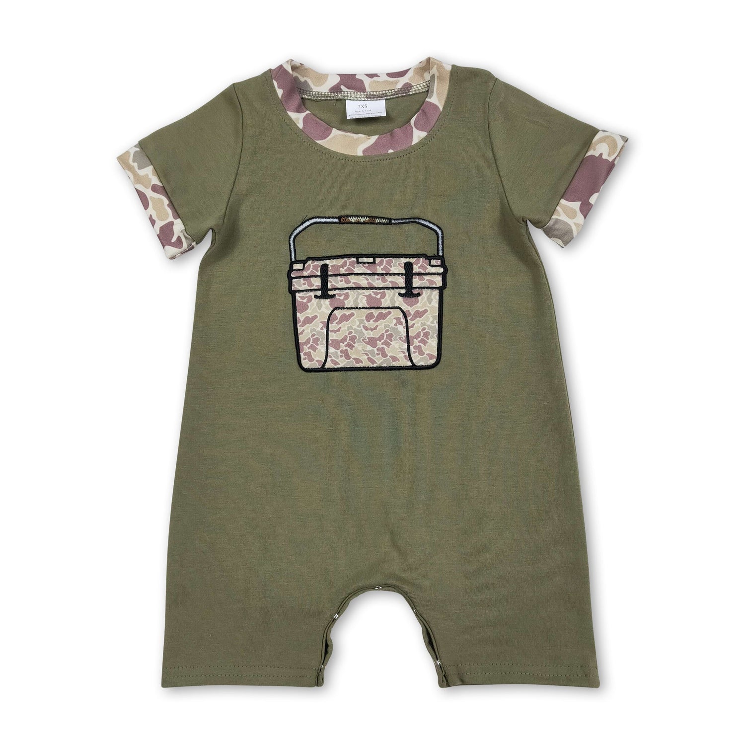Short sleeves camo fishing embroidery baby boy romper