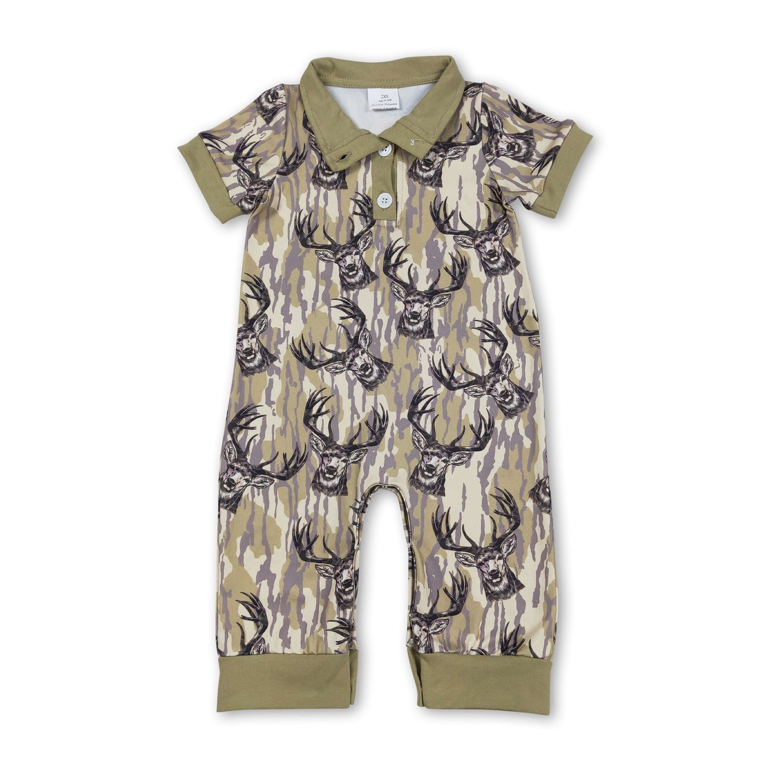 Short sleeves deer camo baby boy hunting romper