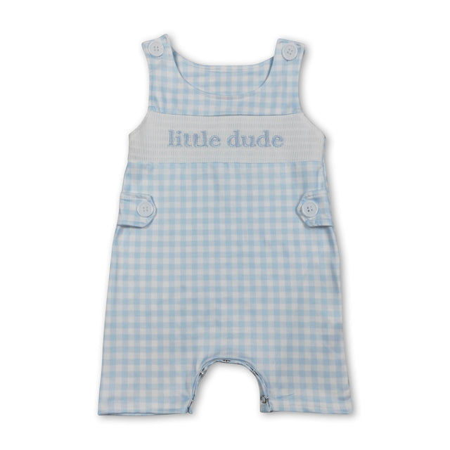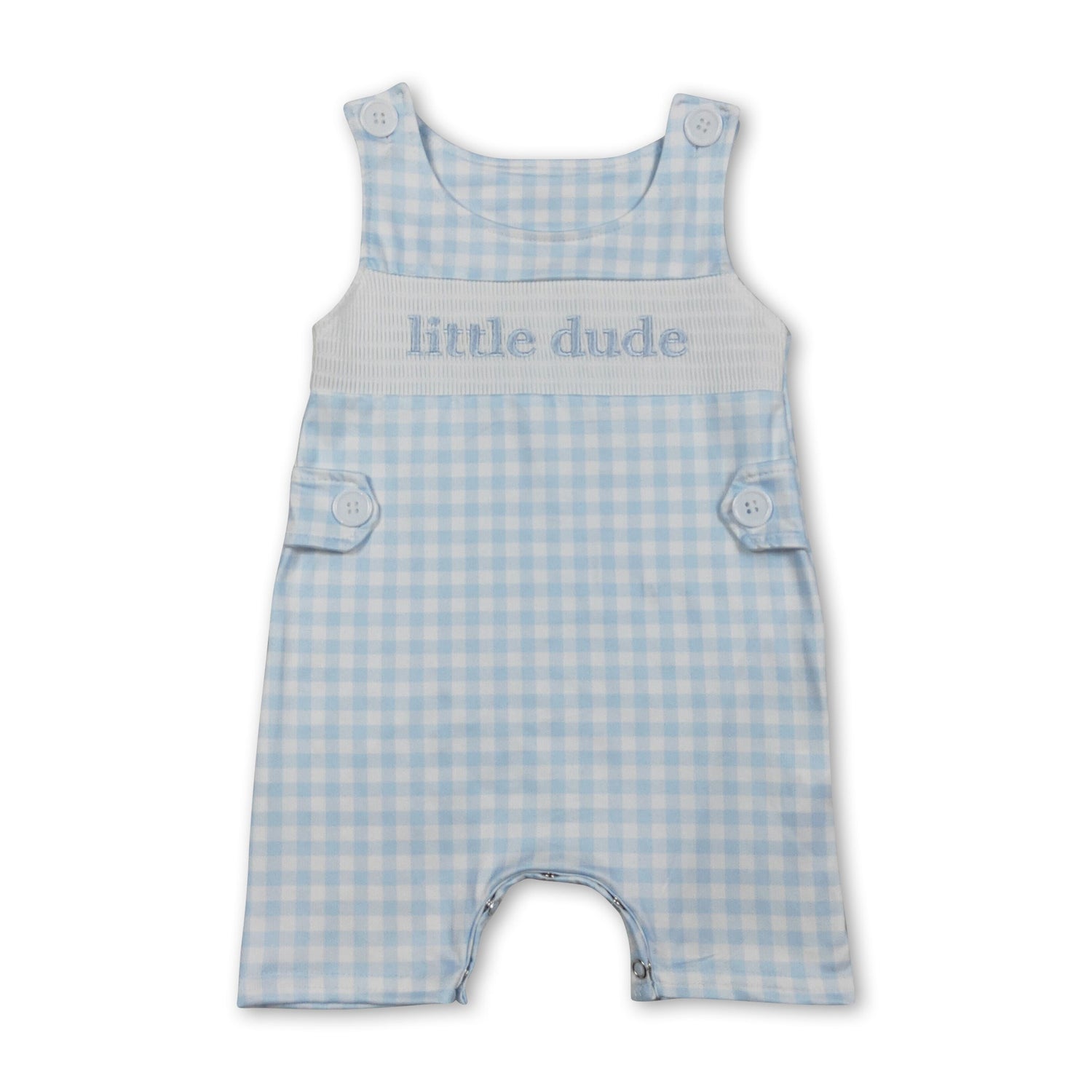 Sleeveless plaid little dude baby boys smocked romper - 0-3M is backordered and will ship as soon as it is back in stock.