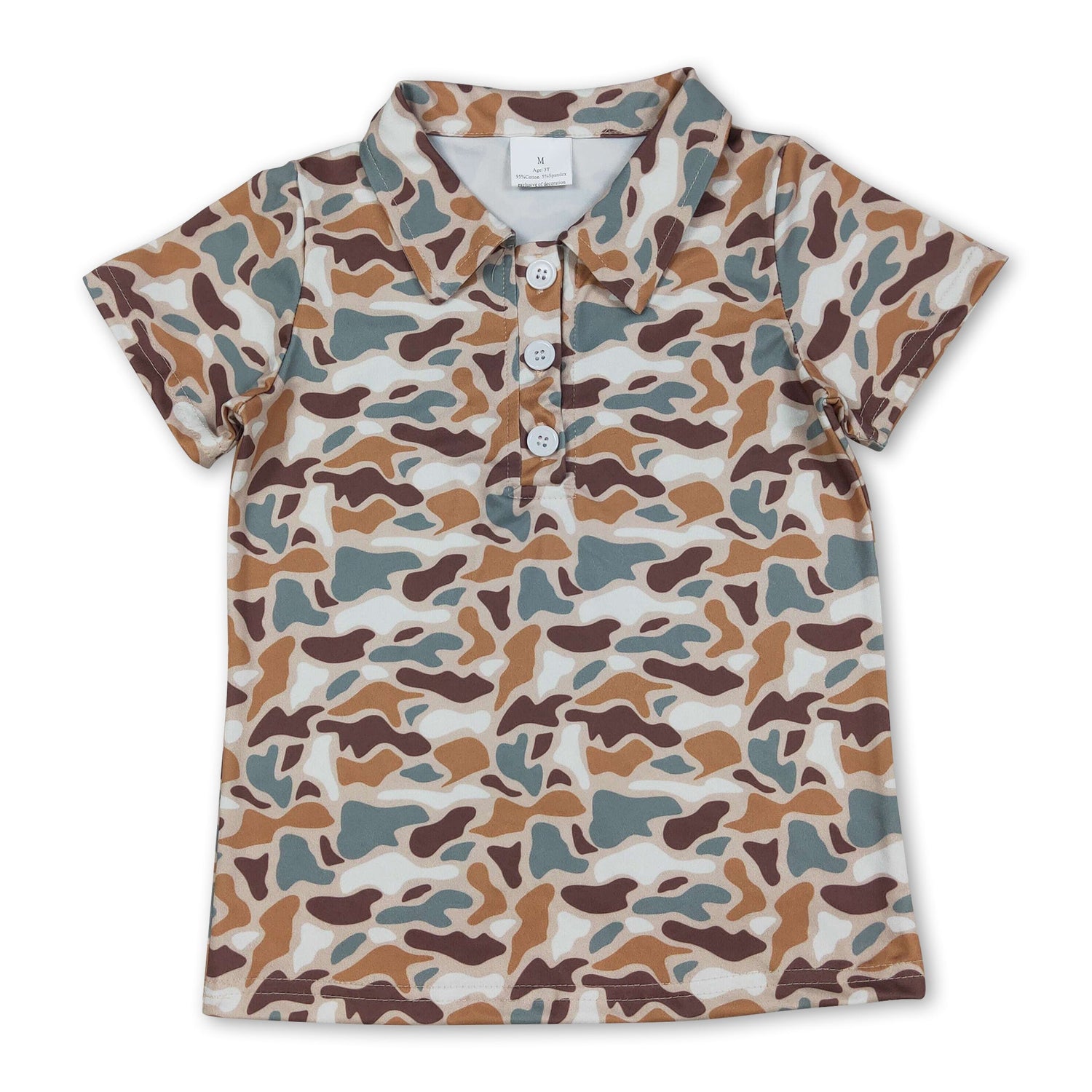Short sleeves white brown camo kids boys polo shirt
