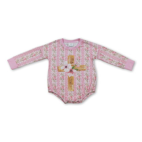 From $2100Unit price /UnavailableLong sleeves pink floral cross baby girls Easter romper