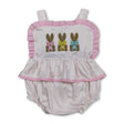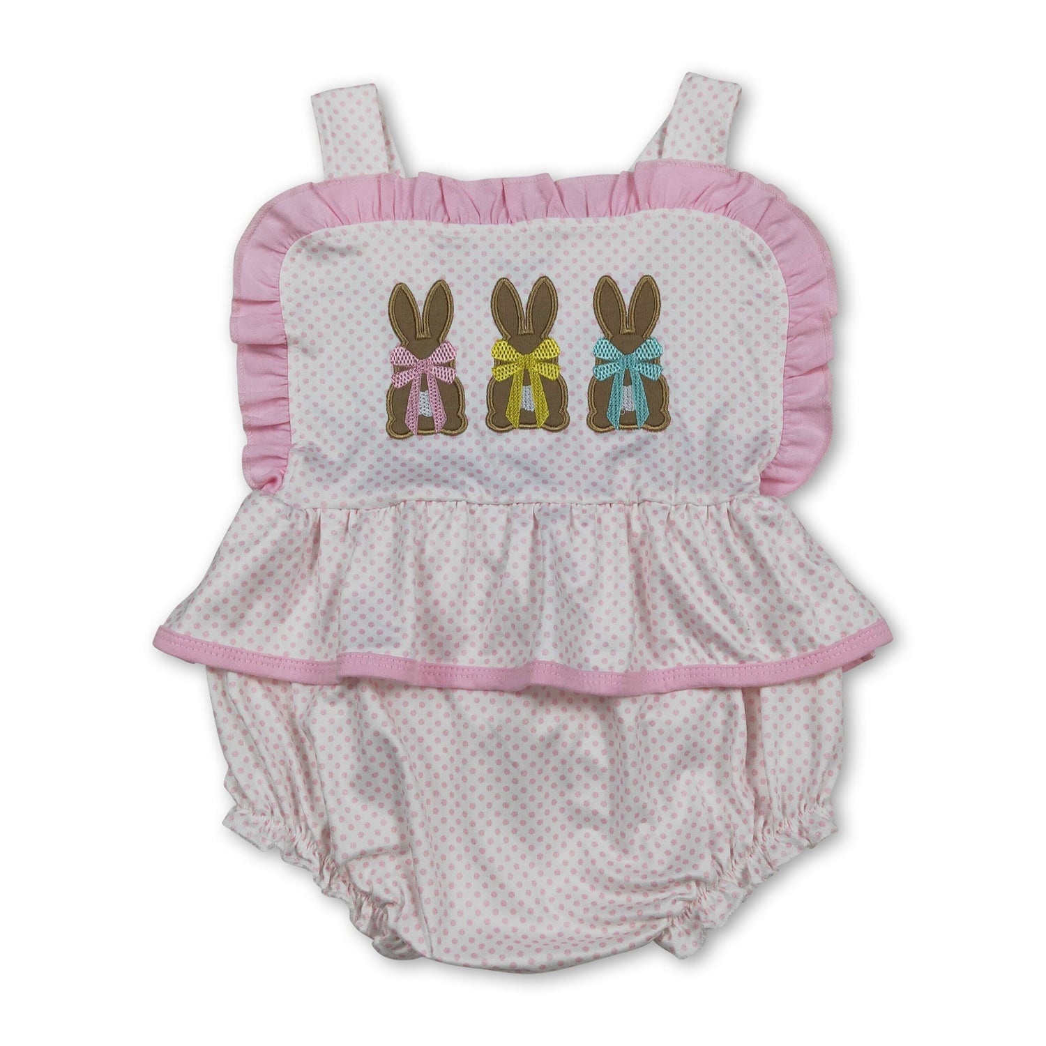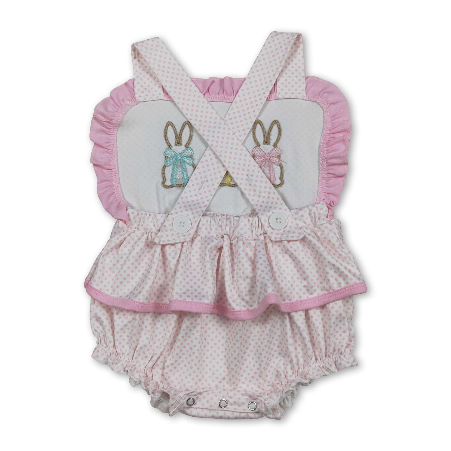 Polka dots bunny bow baby girls embroidery Easter romper - 0-3M is backordered and will ship as soon as it is back in stock.