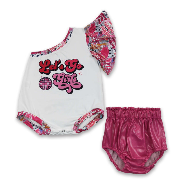 Let's go romper hot pink leather bummies baby girls clothes - 0-3M is backordered and will ship as soon as it is back in stock.
