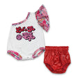 Let's go romper red leather bummies baby girls clothes - 0-3M is backordered and will ship as soon as it is back in stock.