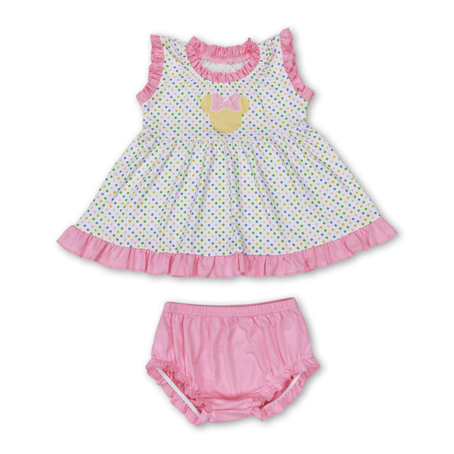 Sleeveless polka dots mouse tunic bummies baby clothes