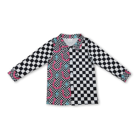 Black plaid thunder western kids button down shirt