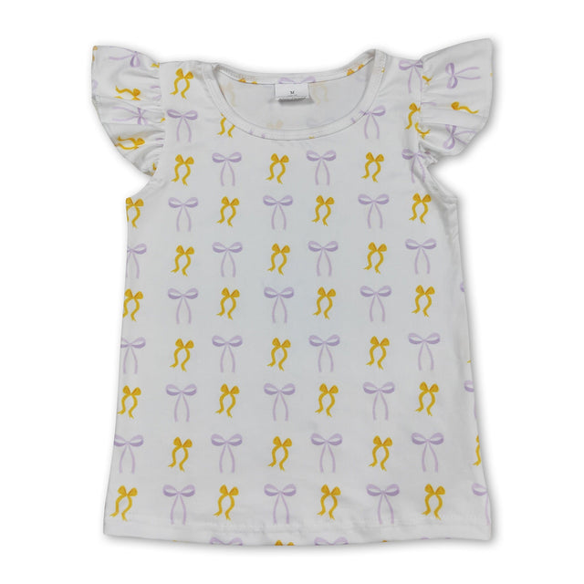 Flutter sleeves gold lavender bows baby girls shirt - 3-6M is backordered and will ship as soon as it is back in stock.