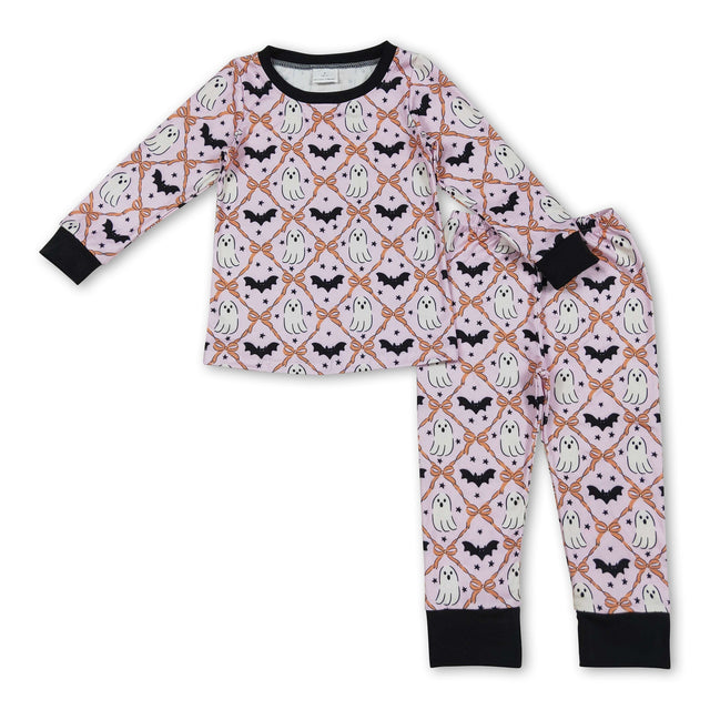 Long sleeves ghost bat bow baby girls Halloween pajamas