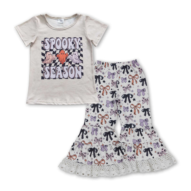 Spooky season ghost top bows pants girls Halloween clothes - 3-6M is backordered and will ship as soon as it is back in stock.