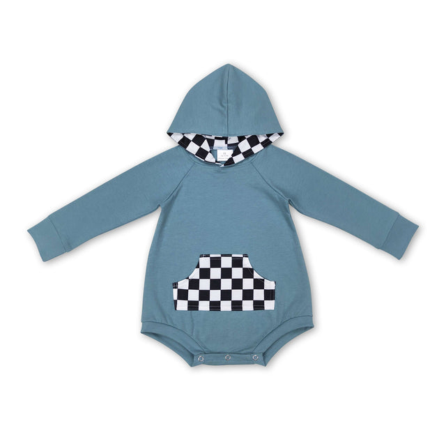 Black plaid long sleeves baby kids hooded romper - 0-3M is backordered and will ship as soon as it is back in stock.