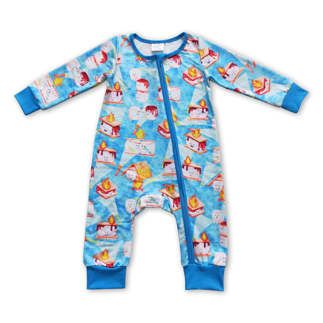 Blue cake heart long sleeves baby boy zipper romper - 0-3M is backordered and will ship as soon as it is back in stock.