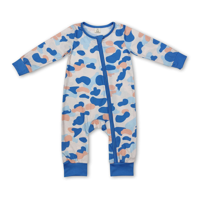 Blue camo long sleeves baby boy zipper romper