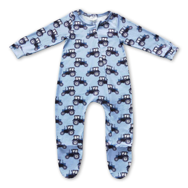 Blue tractor long sleeves baby boy zipper footed coverall - 0-3M is backordered and will ship as soon as it is back in stock.