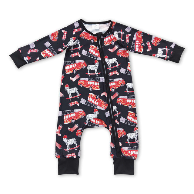 Dog fire truck long sleeves baby boy zipper romper