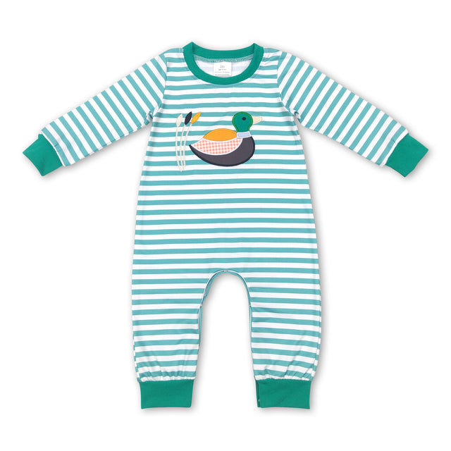 Green stripe duck long sleeves baby boy romper - 0-3M is backordered and will ship as soon as it is back in stock.