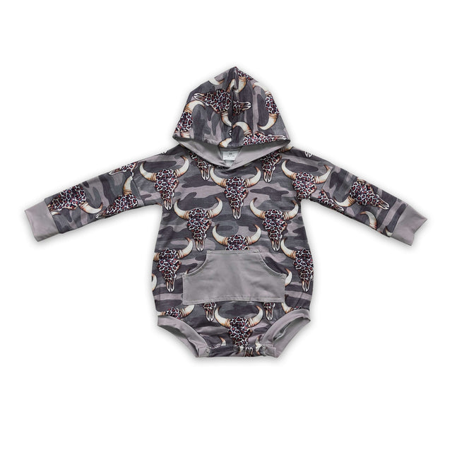 Leopard cow camo long sleeves hoodie baby kids romper - 0-3M is backordered and will ship as soon as it is back in stock.