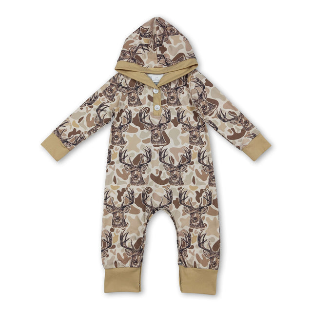 Long sleeves camo deer hunting baby hooded romper - 0-3M is backordered and will ship as soon as it is back in stock.