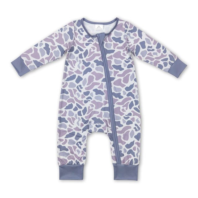 Long sleeves grey camo baby kids zipper romper - 0-3M is backordered and will ship as soon as it is back in stock.