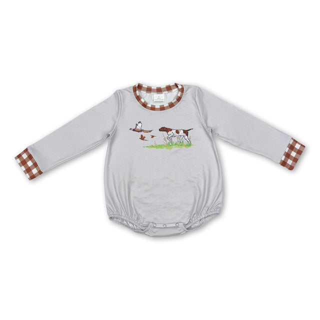 Long sleeves plaid dog duck baby boy hunting romper - 0-3M is backordered and will ship as soon as it is back in stock.