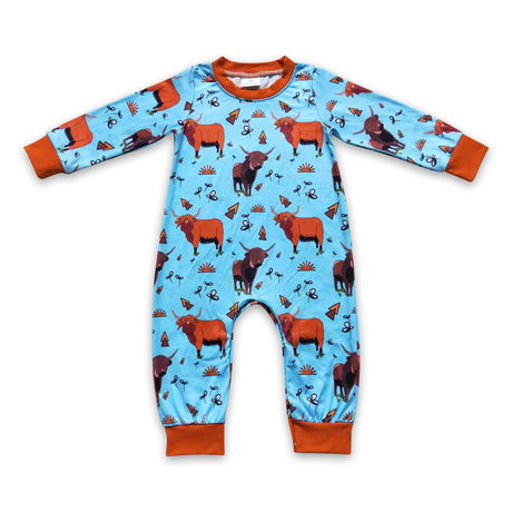 $1800Unit price /UnavailableLight blue stripe highland cow baby boy romper