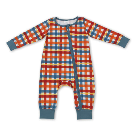 $1900Unit price /UnavailableBrown blue plaid baby kids fall zipper romper