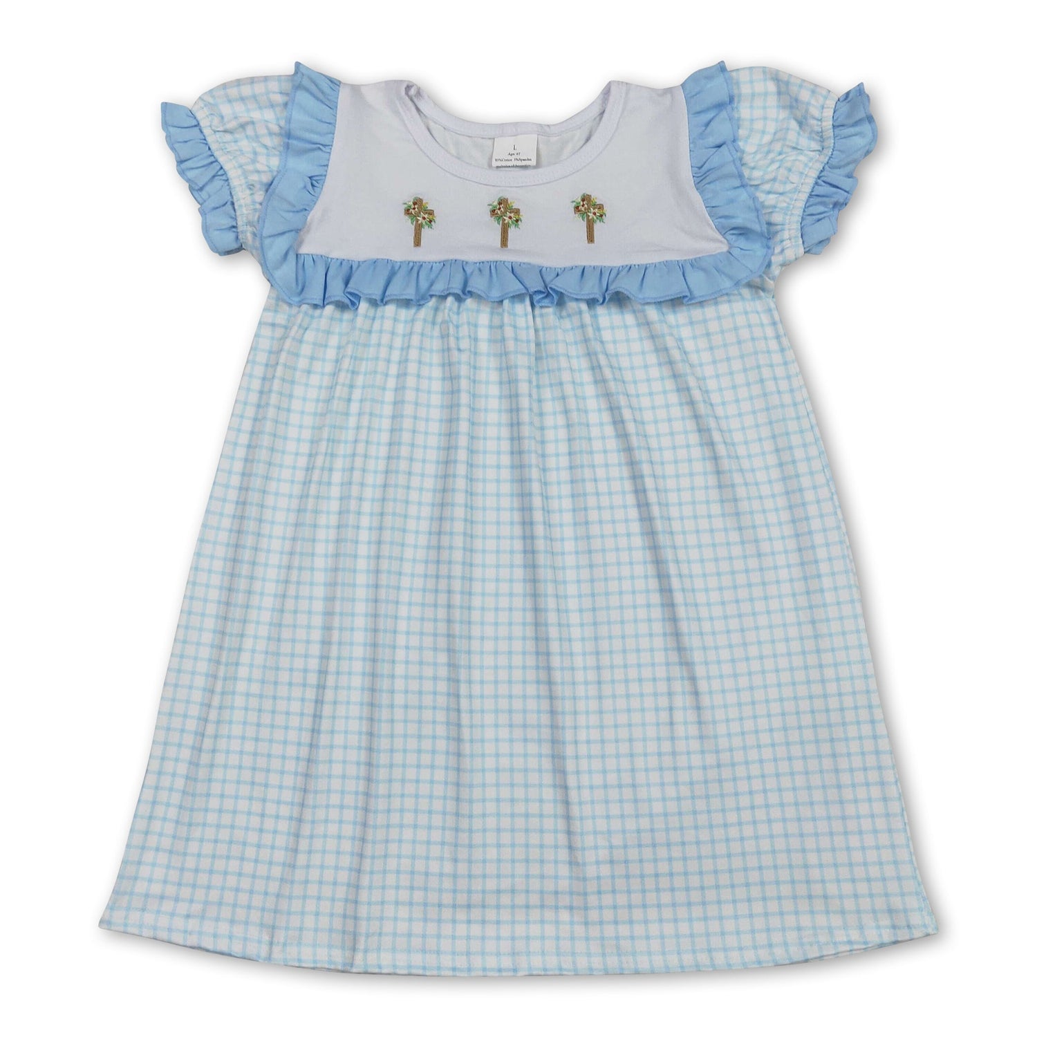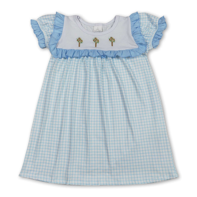 blue plaid cross print short sleeve girl dress