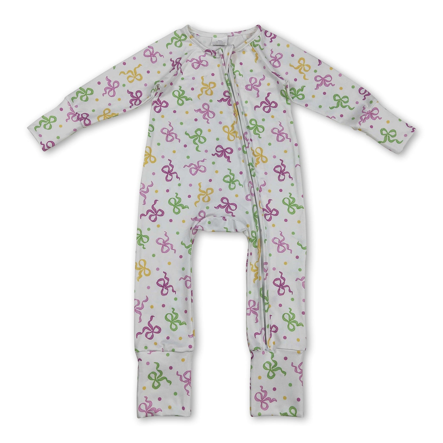 long sleeves purple green yellow bows polka baby romper - 0-3M is backordered and will ship as soon as it is back in stock.
