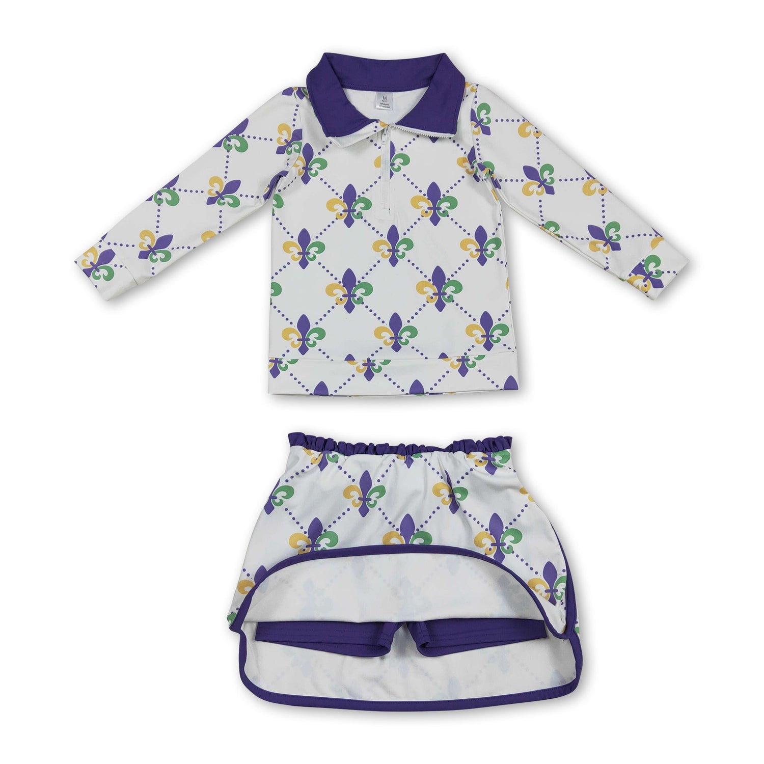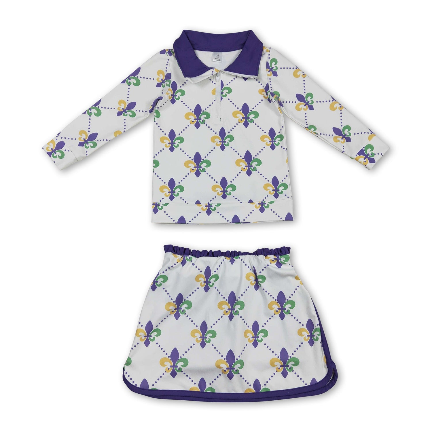 long sleeves top skirt kids girls Mardi Gras set - 3-6M is backordered and will ship as soon as it is back in stock.