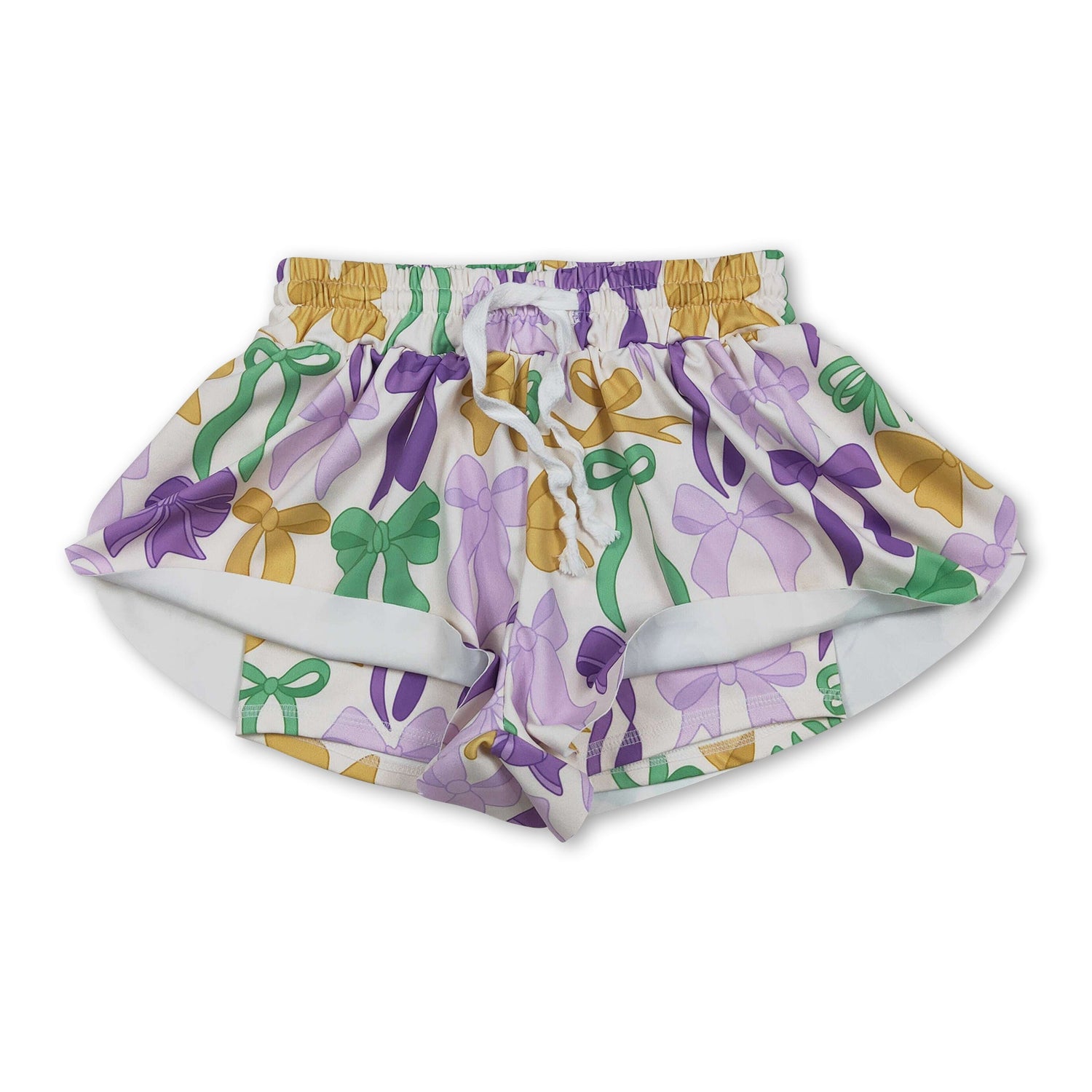 Purple green yellow bow kids girls Mardi Gras active shorts
