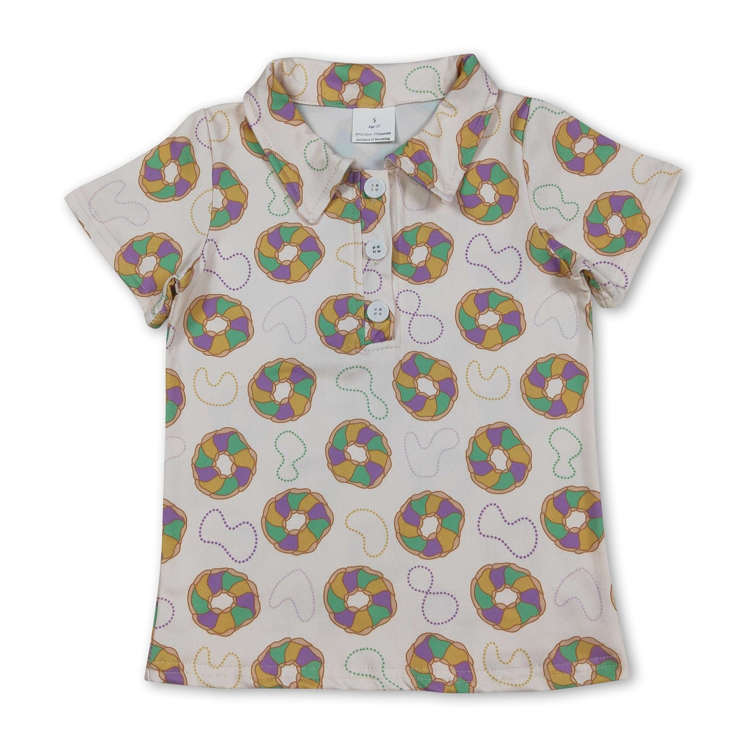 Purple yellow green donuts boys Mardi Gras polo shirt