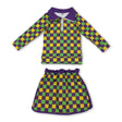 purple yellow green plaid pullover skirt kids girls Mardi Gras set