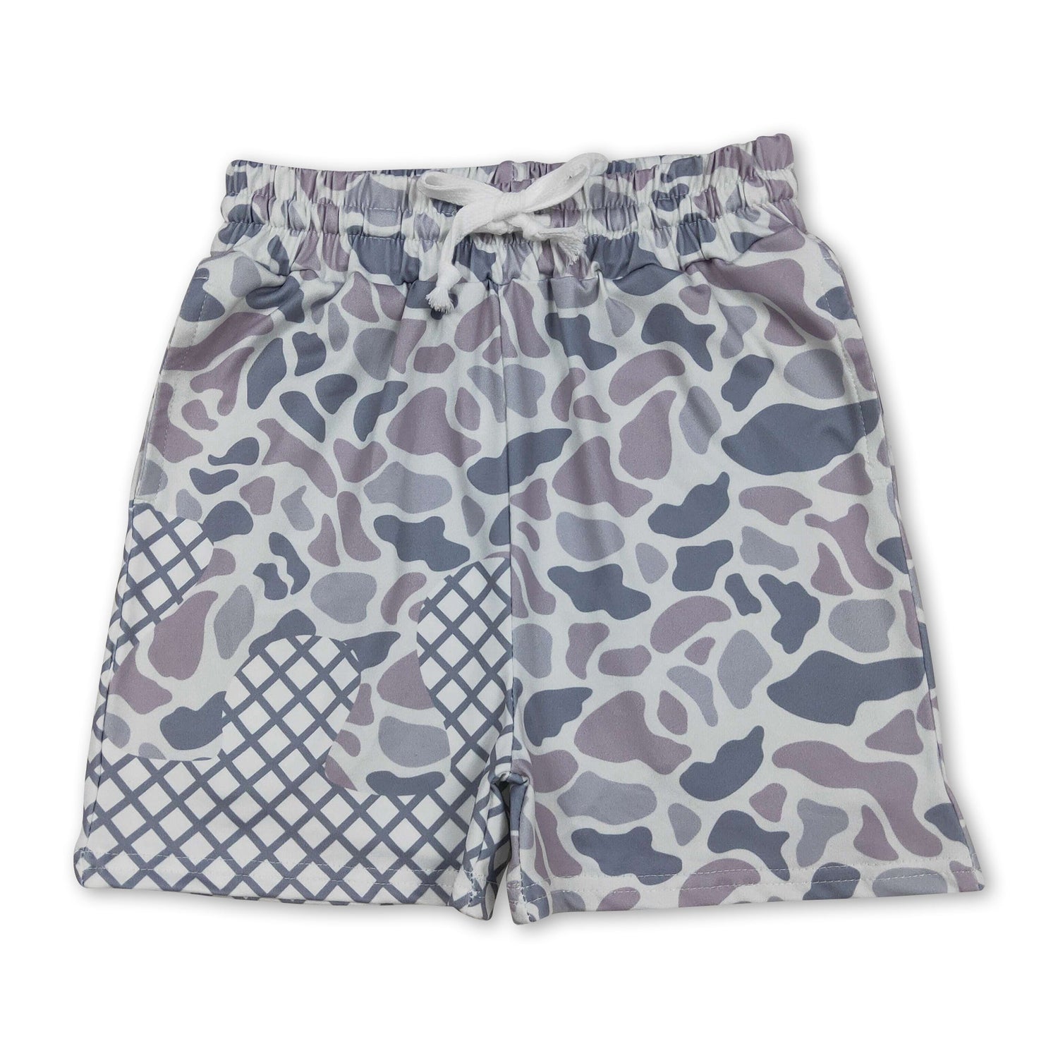 Grey camo ice cream sprinkle baby boy shorts - 12-18M is backordered and will ship as soon as it is back in stock.