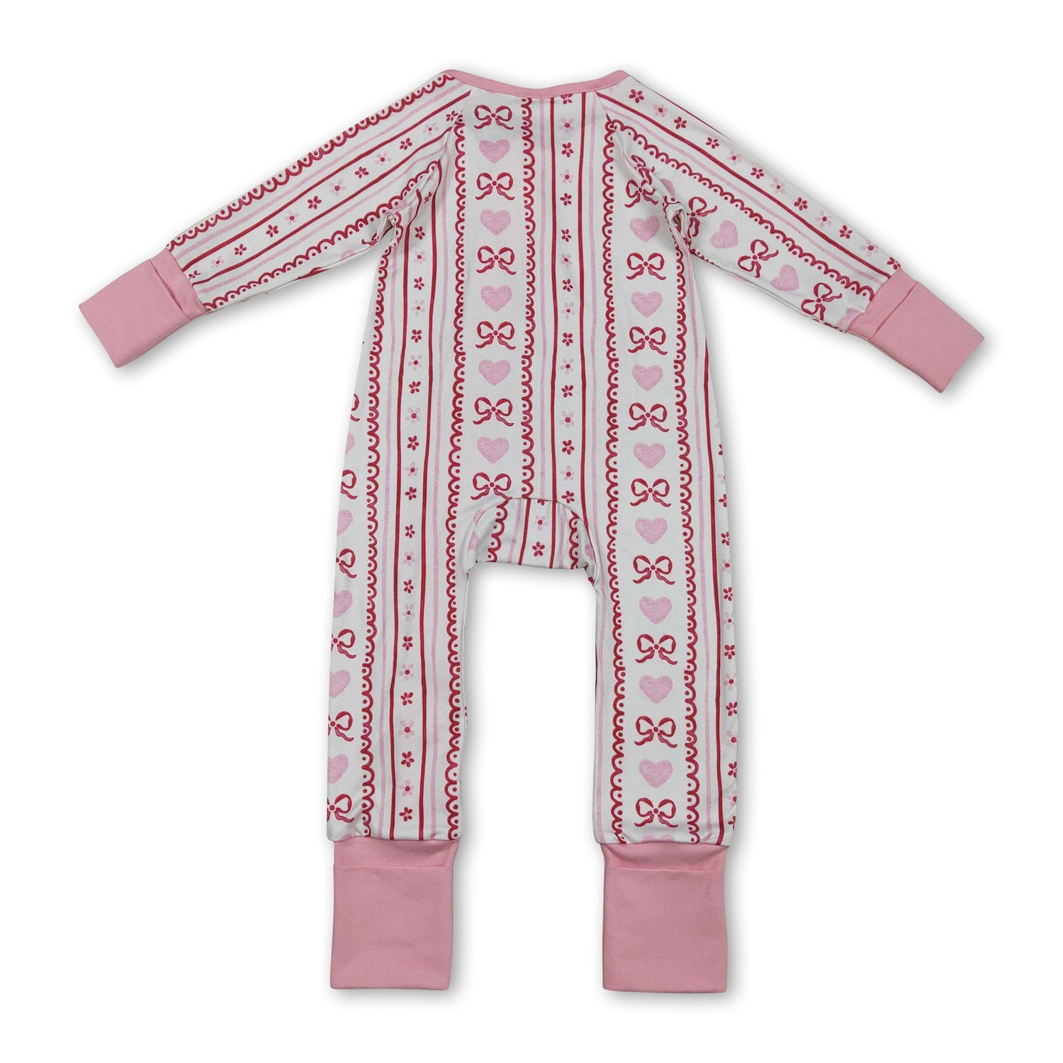 Long sleeves pink bow heart baby girls valentine's zip romper