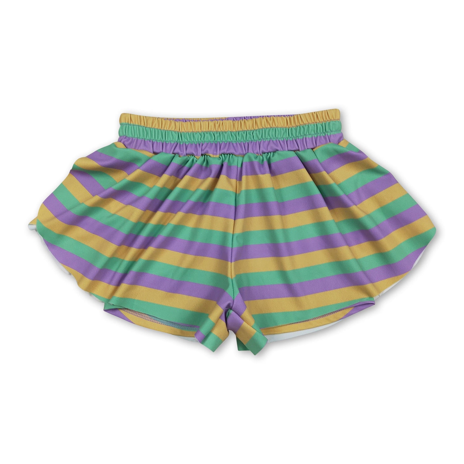 Purple green yellow stripe kids girls Mardi Gras active shorts