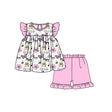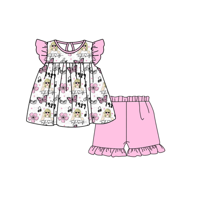MOQ 3 Flutter sleeves floral butterfly tunic shorts singer girls set