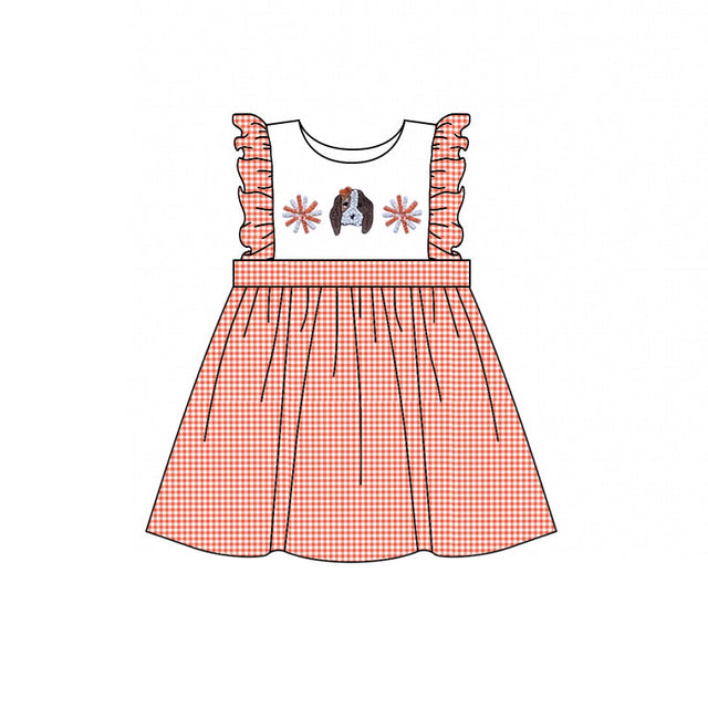 MOQ 3 pcs flutter sleeves plaid dog girls team dresses