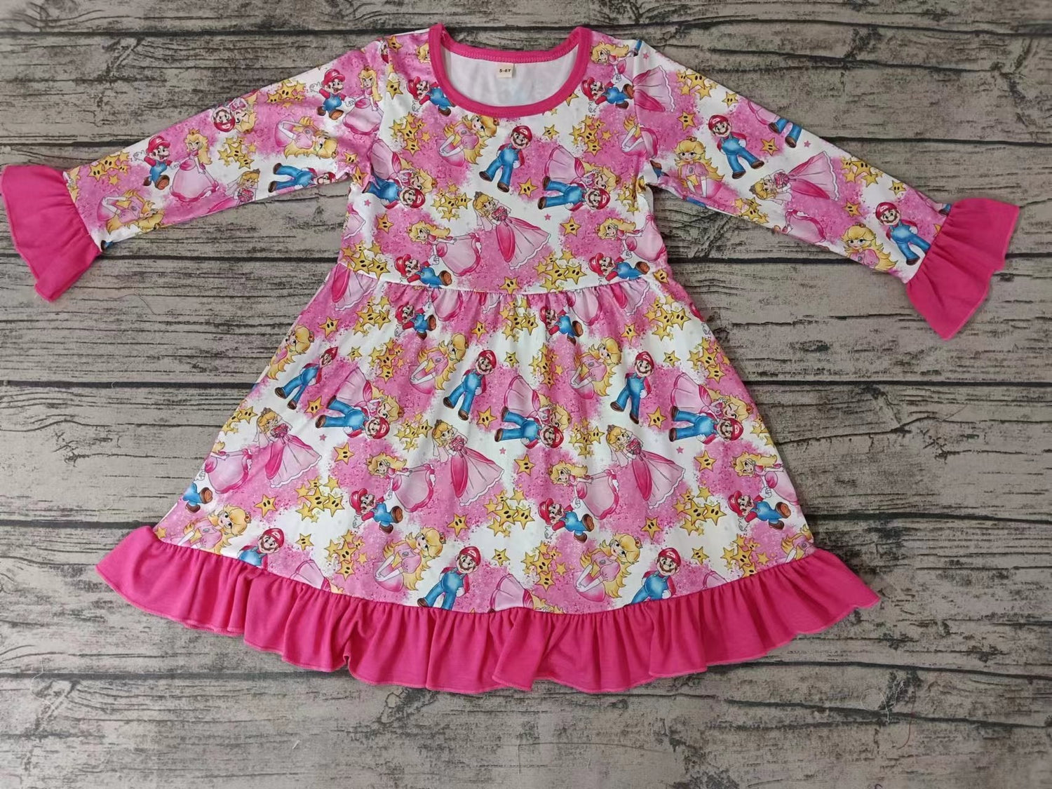 MOQ 3 pcs hot pink long sleeves ruffle princess girls dresses - 3-6M is backordered and will ship as soon as it is back in stock.
