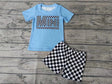 MOQ 3 pcs light blue mini top plaid shorts boys clothes - 3-6M is backordered and will ship as soon as it is back in stock.
