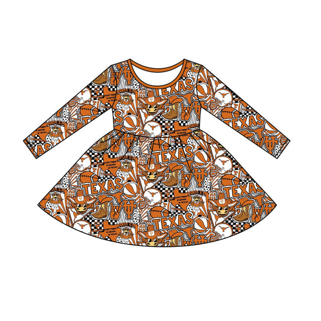 MOQ 3 pcs long sleeves cow boots football girls team dress - 3-6M is backordered and will ship as soon as it is back in stock.