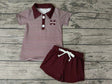 MOQ 3 pcs M maroon stripe polo shirt shorts boy team clothes - 3-6M is backordered and will ship as soon as it is back in stock.