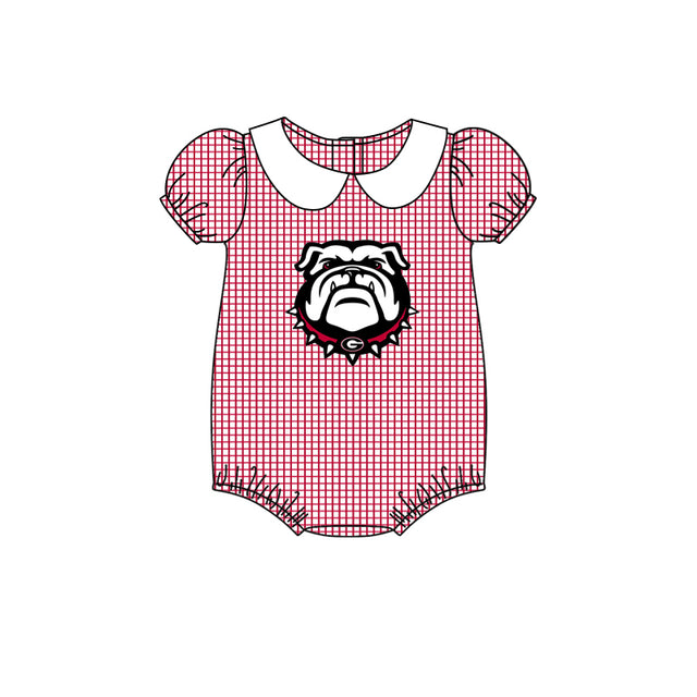 MOQ 3 pcs Red plaid short sleeves G girls team romper - 0-3M is backordered and will ship as soon as it is back in stock.