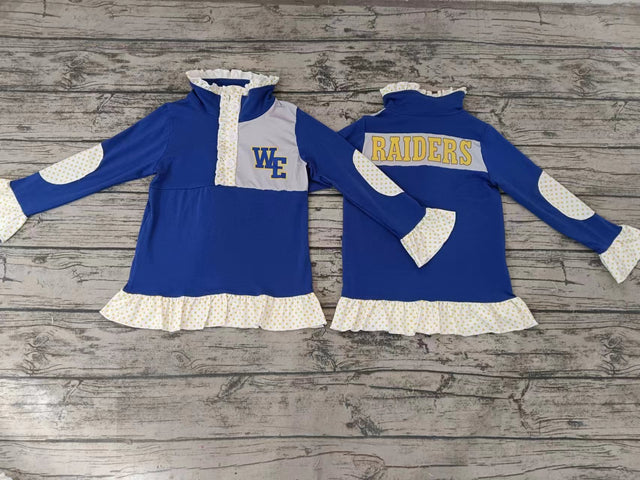 MOQ 3 pcs W E blue polka dots girls team pullover