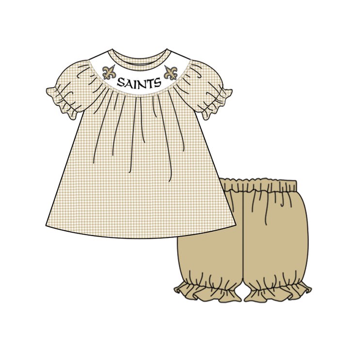 MOQ 3 short sleeves khaki plaid top shorts girls team outfits - 3-6M is backordered and will ship as soon as it is back in stock.